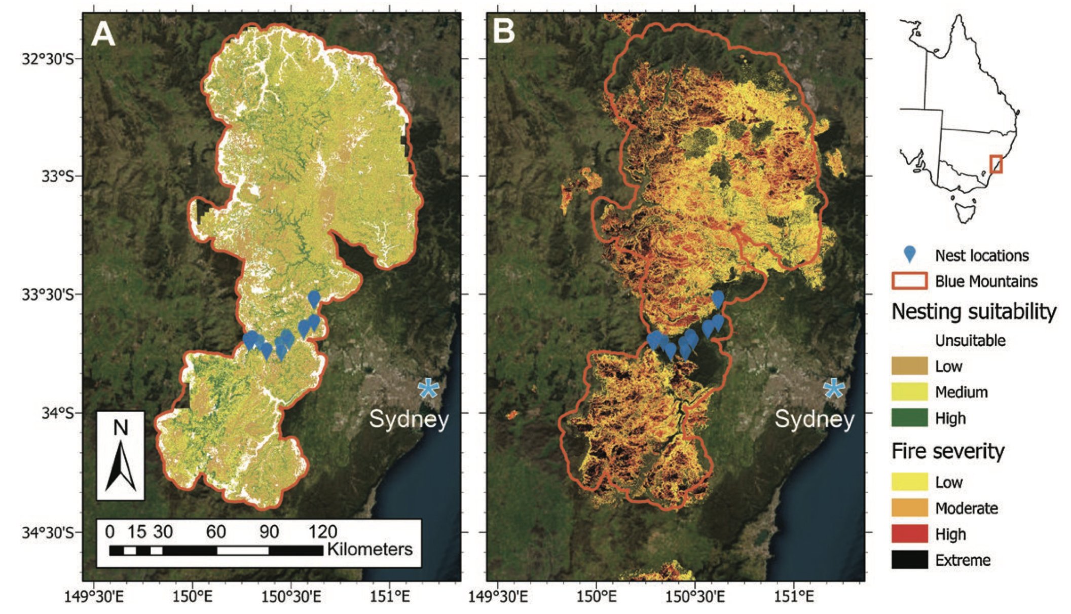 They calculated that 75% of all nesting habitat burned in the 2019–2020 megafires with more than half of all rainforest habitat burned at moderate or greater severity.